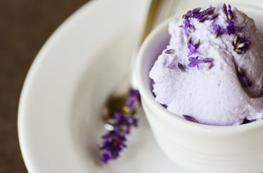 Helado de lavanda, puede sonar un sabor demasiado floral, y verdaderamente lo es.